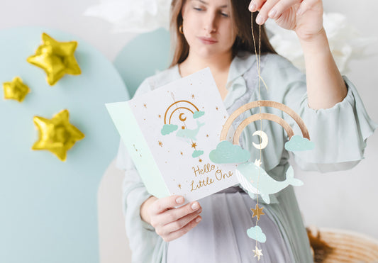 Kartīte ar karājošu dekoru “Valis”, gaiši tiffany zilā, 14 × 20 cm