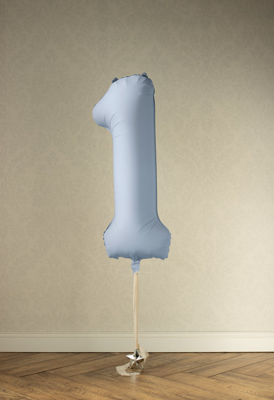 Matēts folija balons ar ciparu “1” 86cm, gaiši zils